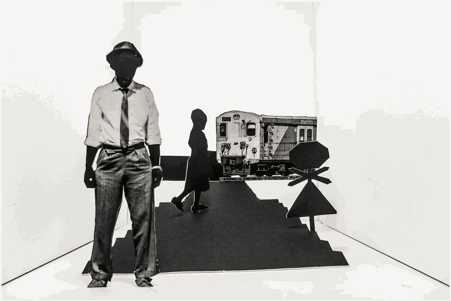 The third body of work, Tell Tale, is where my practice is at this point: looking at photography and theater and how those two practices have such similarities in the sense that both rely so much on performance and staging. It is different from the other two big bodies of work that are a part of the exhibition, as this is based on scripts by Athol Fugard. It basically investigates his play scripts. I went to the small towns where he had written the plays from or places that he wrote about in them. I then recreated the scenes the way I imagined, by making these cardboard cutouts that almost become like a theater set, and then placing them in these box maquettes.